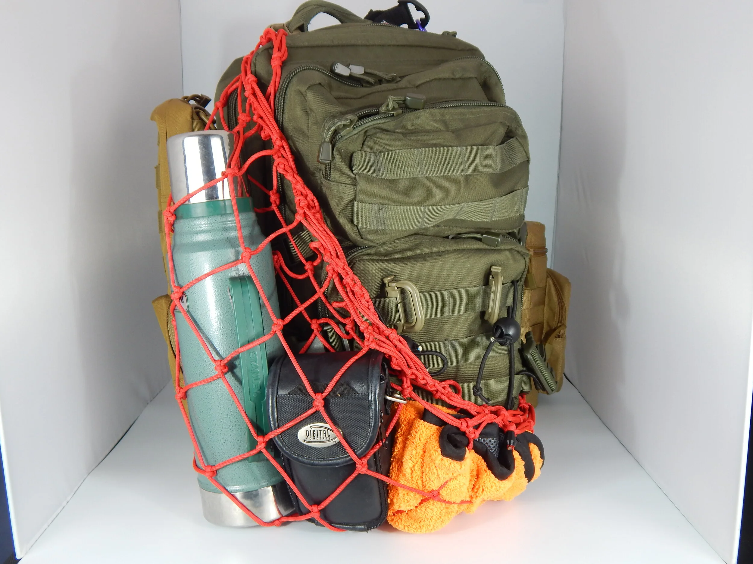 It starts with the original external backpack net. It covers your pack to create one big pocket. But let’s say you also have a Tactical/Molle pack. Does the backpack net fit it also?